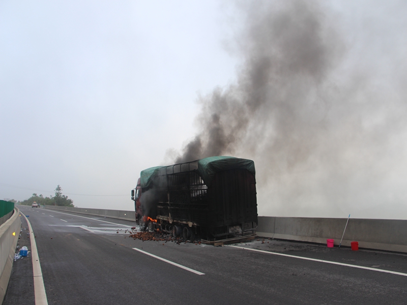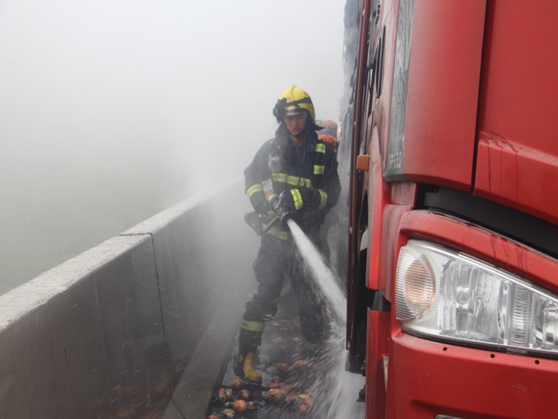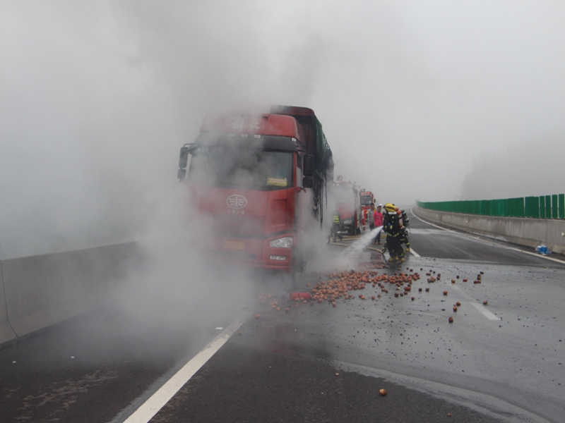 兴义:高速路上货车起火 消防成功处置