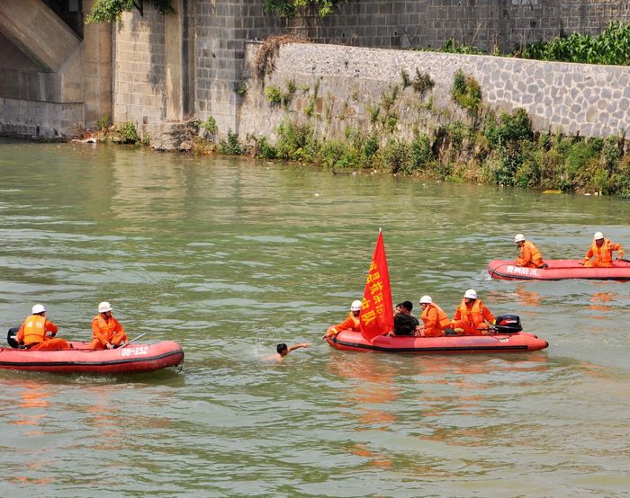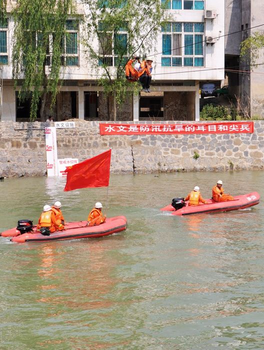 此次演练,进行了发生洪灾后的报警、预案启动、人员疏散、抢救人员和物资、救护伤员、搭建救灾帐篷,在洪水猛涨后的消防官兵大绳横渡救人、冲锋舟队型演示、抢救落水群众等内容。