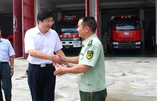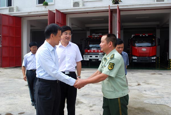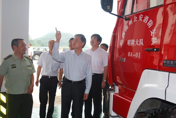 陈敏尔省长强调,消防部队承担着防火、灭火和应急救援等各项任务,车辆器材装备配备十分重要。晴隆县委、县人民政府要多关心消防大队各项建设,多关爱消防官兵,要以发展的眼光和前瞻的思维,加强消防车辆和器材装备建设,为消防部队发展提供更坚强的支撑和更有力的保障。同时,消防官兵要加强对车辆器材装备的熟悉和掌握,确保部队战斗力的不断加强和提升,为构建和谐社会提供消防安全保障。